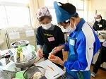 【中学部】すいとん交流 桐生市更生保護女性会菱支部の方々に教えていただきました。安全に気をつけながら生徒自身で具材を切り、すいとんを作って、一緒に食べました。みんな楽しく交流をすることができました。 |